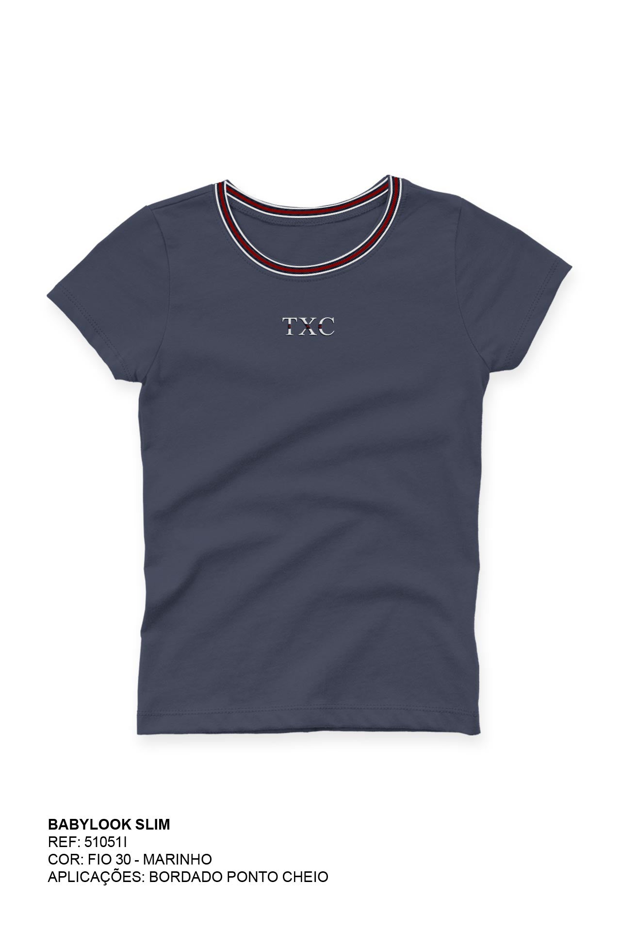 CAMISETA SLIM MEIA MALHA PENTEADA BORDADA 51051i INFANTIL