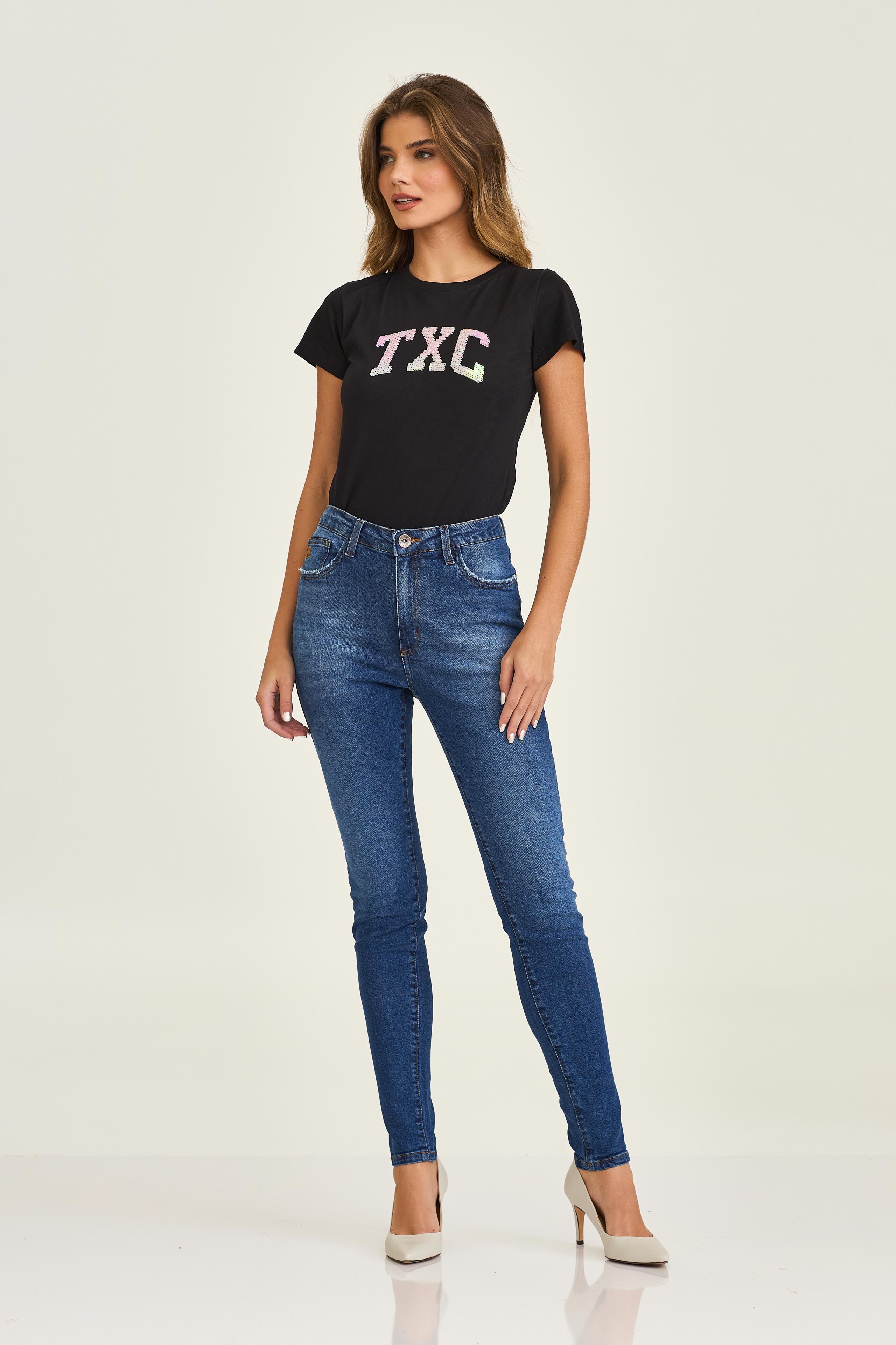Por que escolher a Camiseta Slim Meia Malha Penteada Paetê 51057?