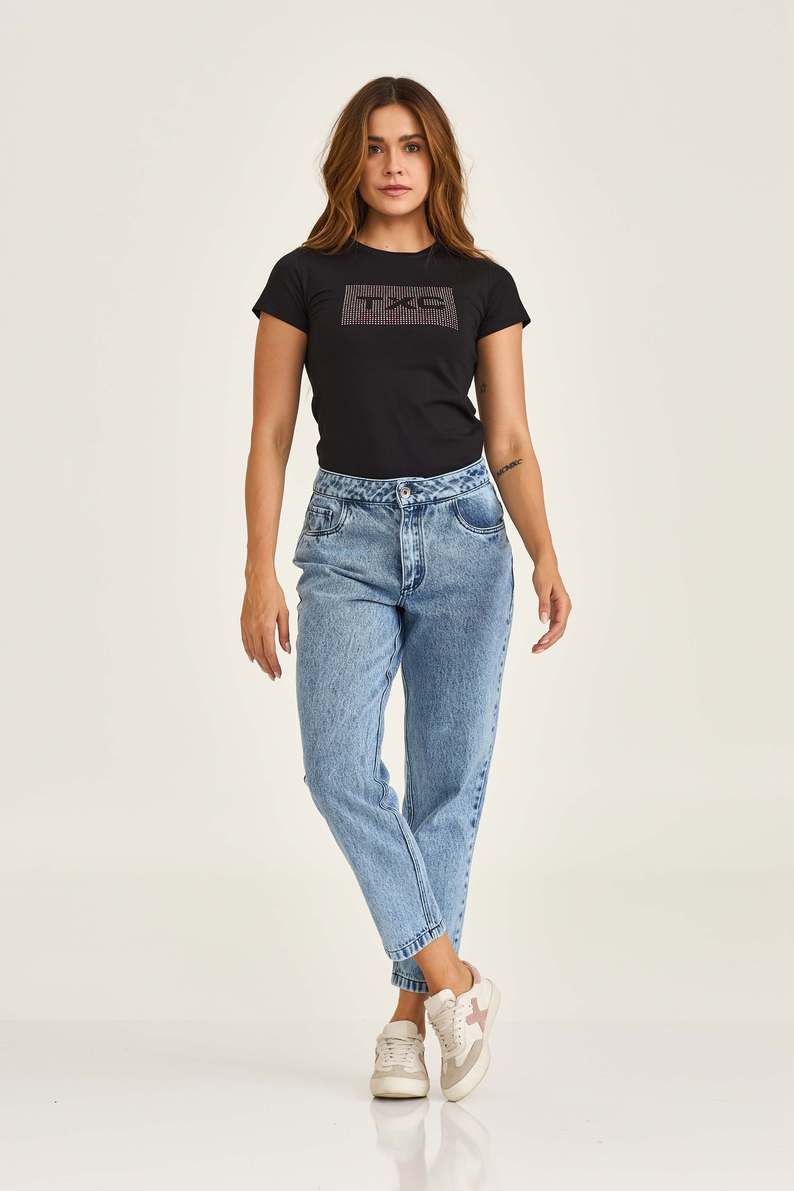Camiseta Slim Meia Malha Penteada Strass 51084 | Estilo e Conforto